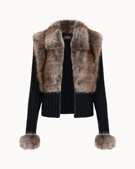 Strickjacke mit Reißverschluss und Kunstfellbesatz