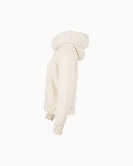 Gestrickter Hoodie mit abnehmbarem Fellkragen