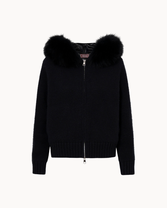 Strickjacke mit Reißverschluss und abnehmbarem Fellkragen